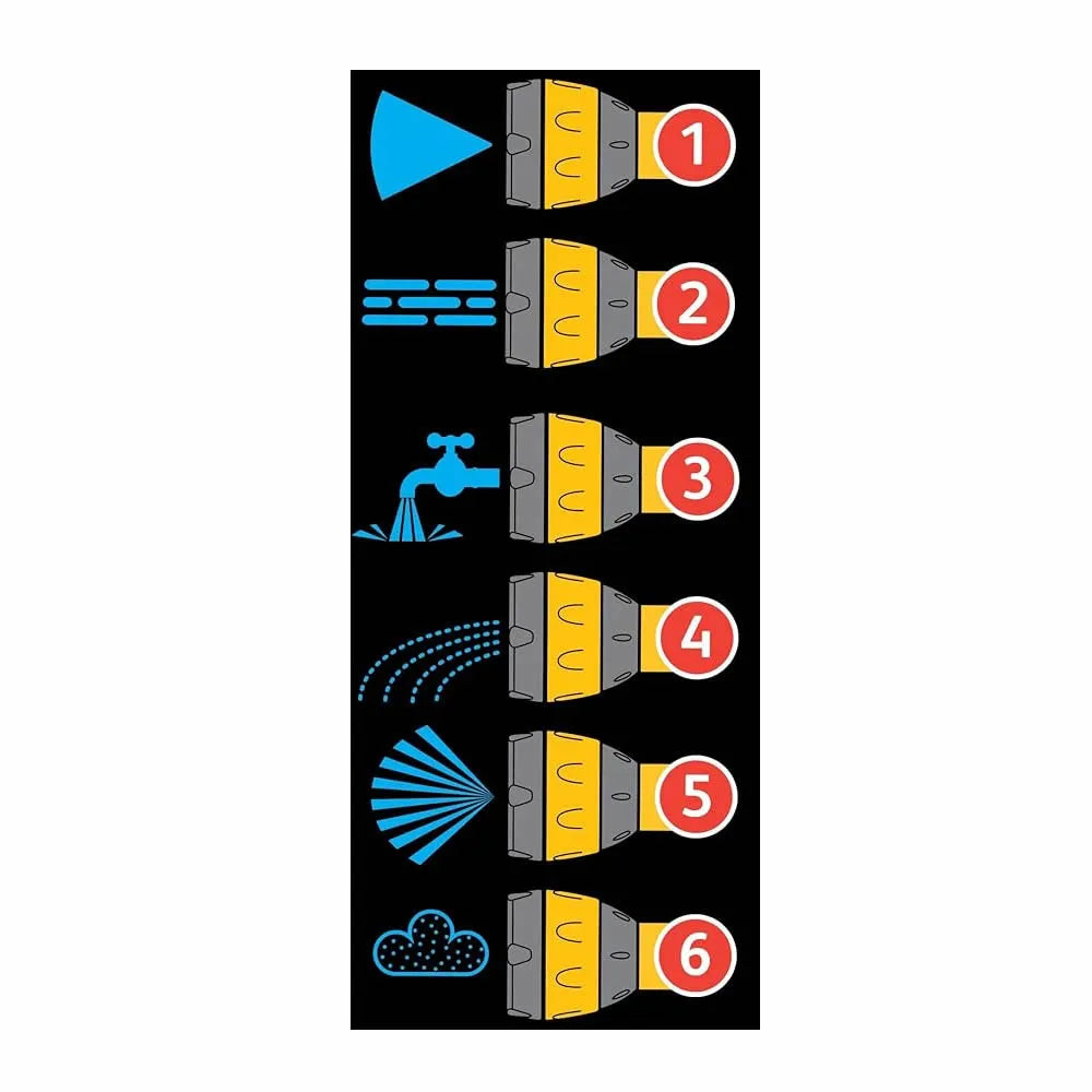 - 7 Rose spray patterns - jet, cone, fast-fill, fan, mist, a brass rose spray pattern, & a gentle aerator spray ideal for watering pots & containers.