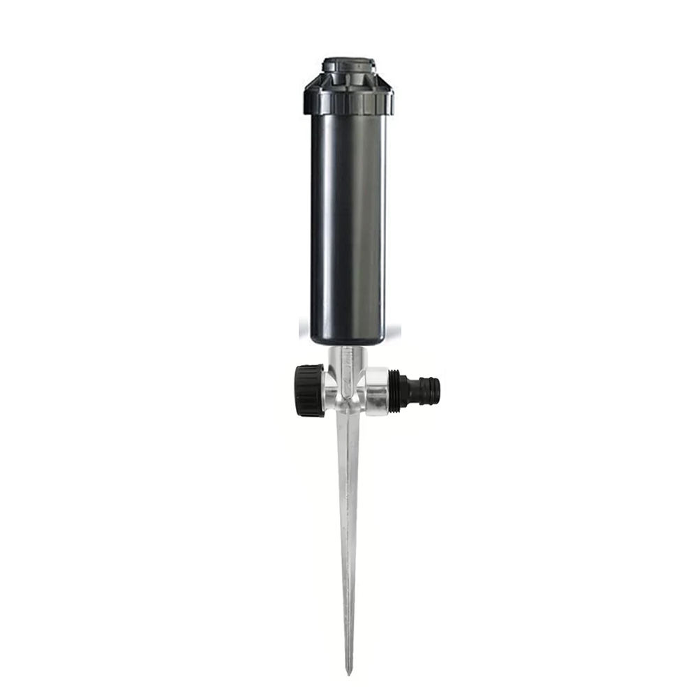 This is the perfect lawn popup sprinkler kit without all the hassle of digging up the lawn. This is based upon a traditional sprinkler spike however it has the convenience of having a variable arc lawn pop-up installed on top. This includes a traditional Hozelock style connector so it can quickly be connected to your traditional garden hose.